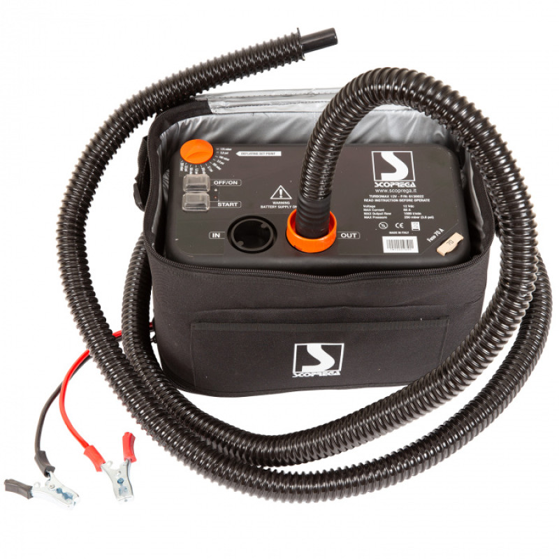 Цена Bravo Turbo Max 12v оптимально соответствует его функциональности и эффективности. Давление регулируется автоматически. При достижении заданного предела, прибор сам отключается. Высокая производительность 1000 л/мин позволяет быстро накачивать большие лодки. Решение купить Bravo Turbo Max 12v принимают владельцы RIB, катеров и лодок ПВХ. 7-метровое судно насос накачивает за 10 минут. Bravo Turbo Max 12v продается в удобной сумке для переноски. В комплектацию входят: шланг, кабель длиной 3 метра с разъемами «аллигатор», набор переходников, насадки для разных клапанов и инструкция.